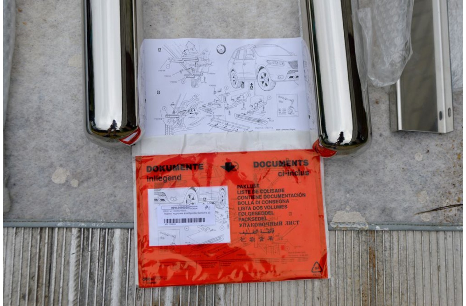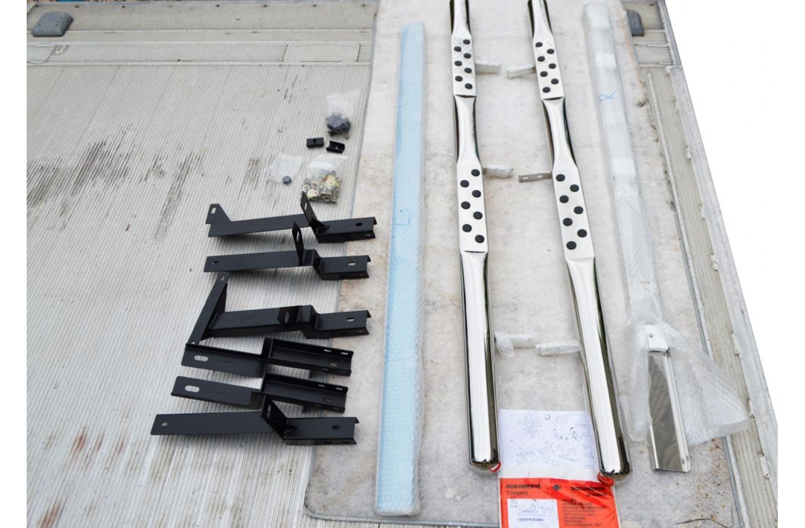 В комплекті дві трубчасті підніжки, дві накладки на пороги, комплект необхідного кріплення та інструкція.